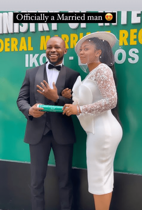 Sharing photos from his court wedding which was held in Lagos, Adedeji, who goes by the nickname Chefdeee on Instagram, wrote;